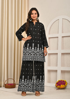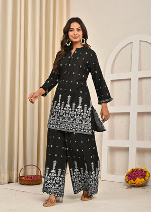 Expertly crafted from soft and breathable cotton, this Mauve Flower Printed Co-Ord Set offers unparalleled comfort and style. The intricate flower print adds a touch of femininity, while the coordinating pieces make it a versatile addition to any wardrobe. Elevate your fashion game with this must-have set.