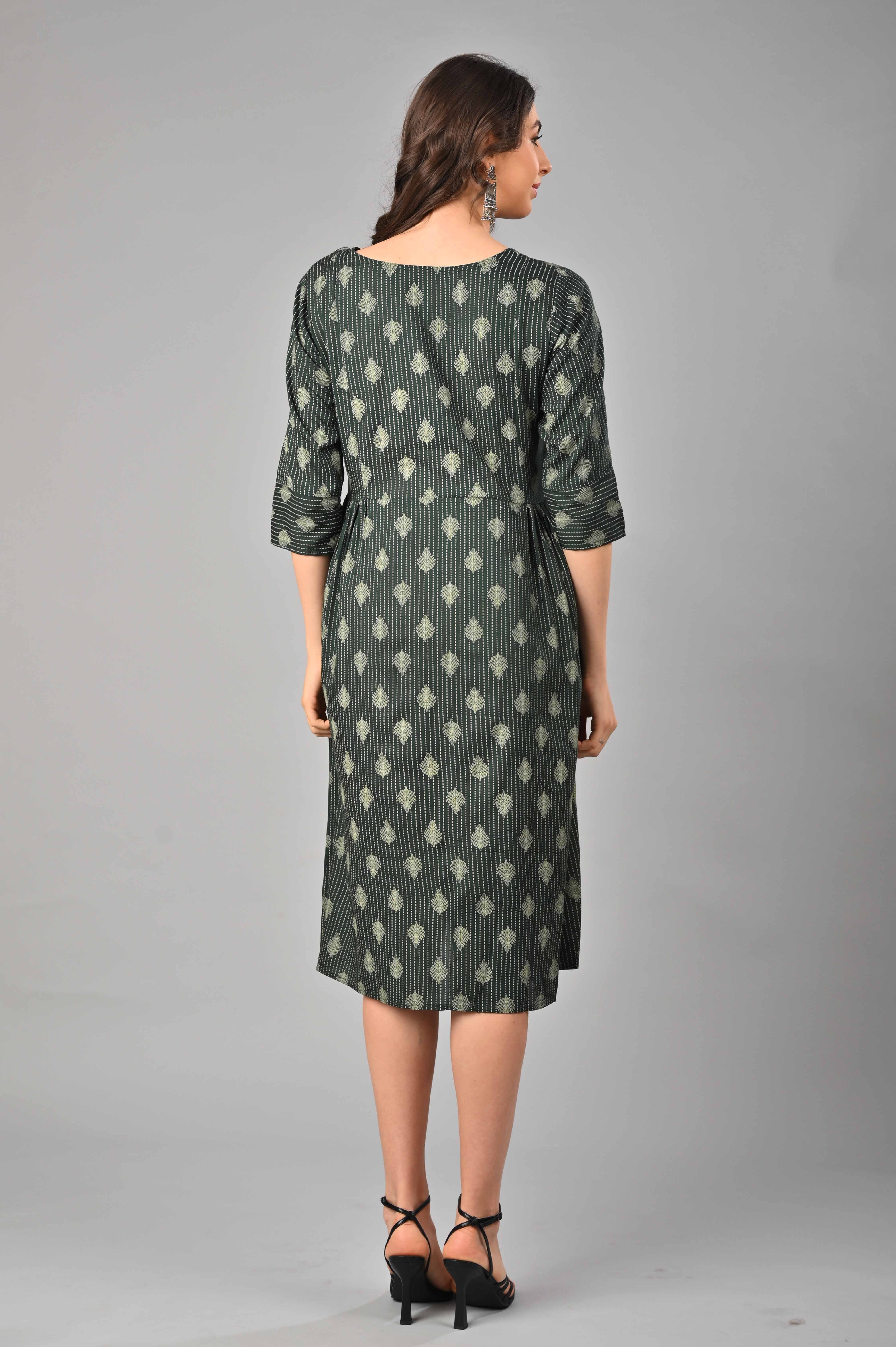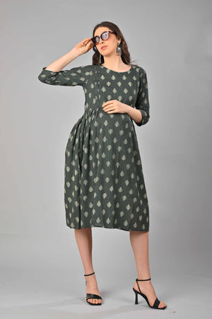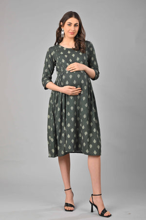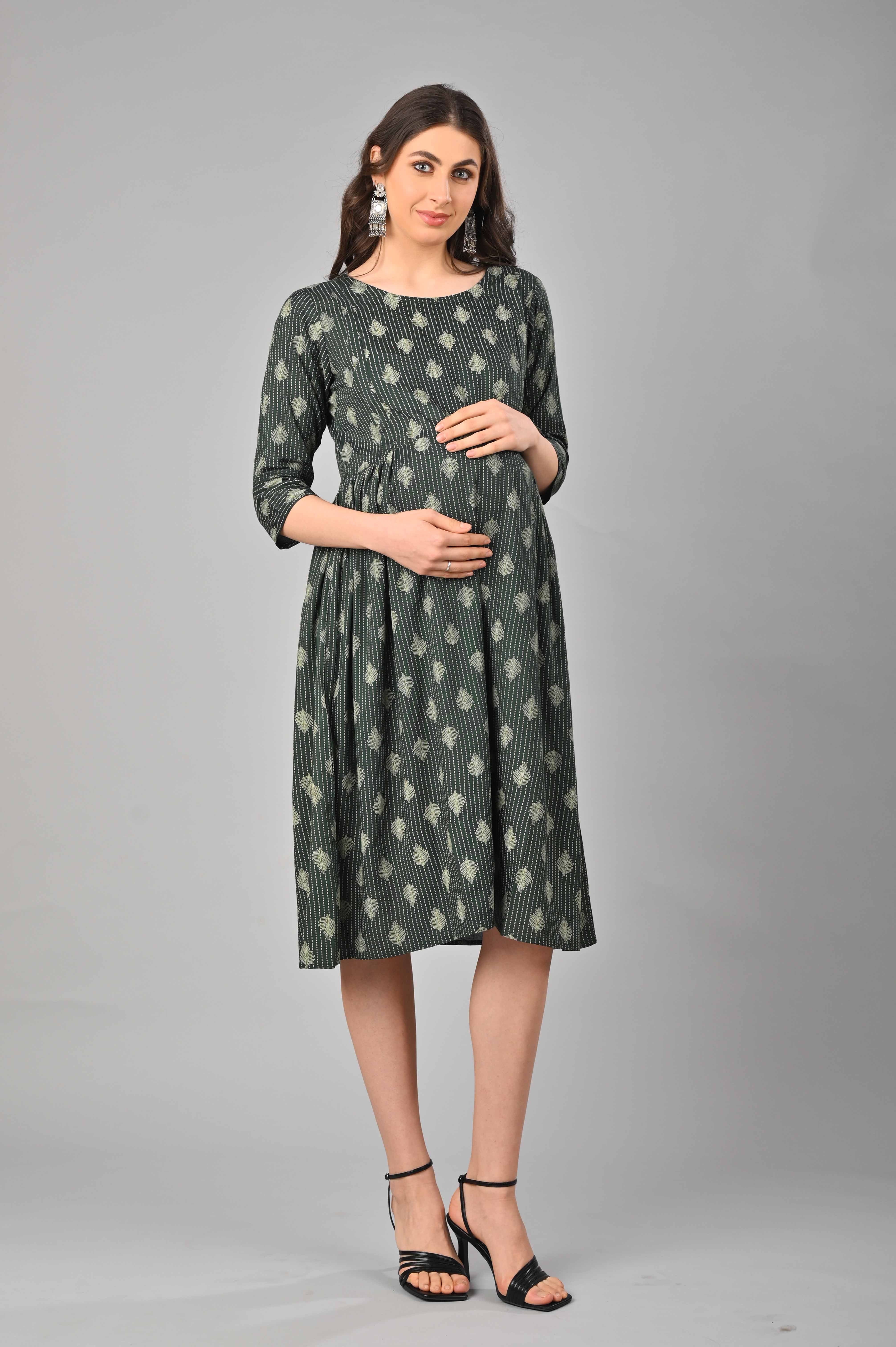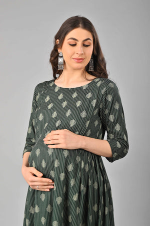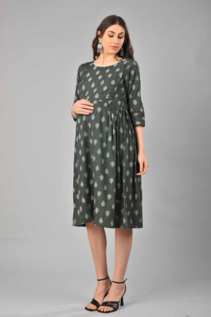 Introducing our Green Cotton Printed Maternity/Feeding Gown. This gown is made of soft and breathable cotton, perfect for your comfort during pregnancy and breastfeeding. The beautiful print adds a touch of style to this functional and practical piece. Invest in your comfort and style with our Mustard Cotton Printed Maternity/Feeding Gown.