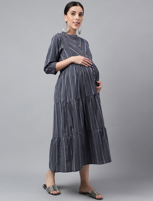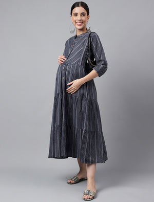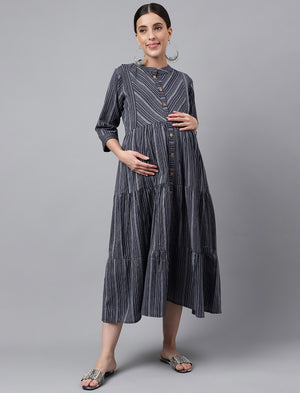 Experience comfort and style with our Grey Printed Cotton Maternity/Feeding Gown. Made from soft, breathable cotton, this gown is perfect for both maternity and nursing. The stylish print adds a touch of flair while the functional design allows for easy access during feeding. A must-have for every expectant or new mother.