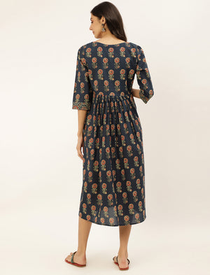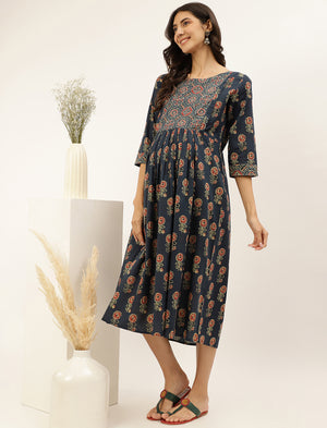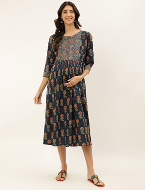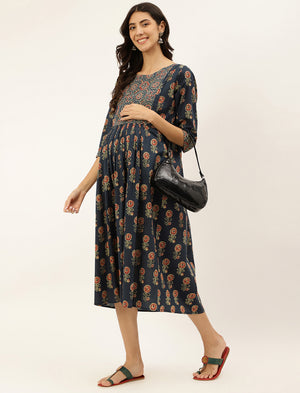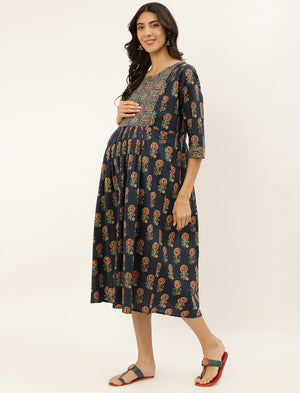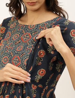 This Navy Flower Butta Printed Cotton Feeding Gown is both stylish and practical. The soft, breathable cotton fabric ensures comfort while the flattering print adds a touch of elegance. Perfect for nursing mothers, this gown allows for easy and discreet feeding.