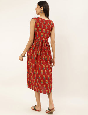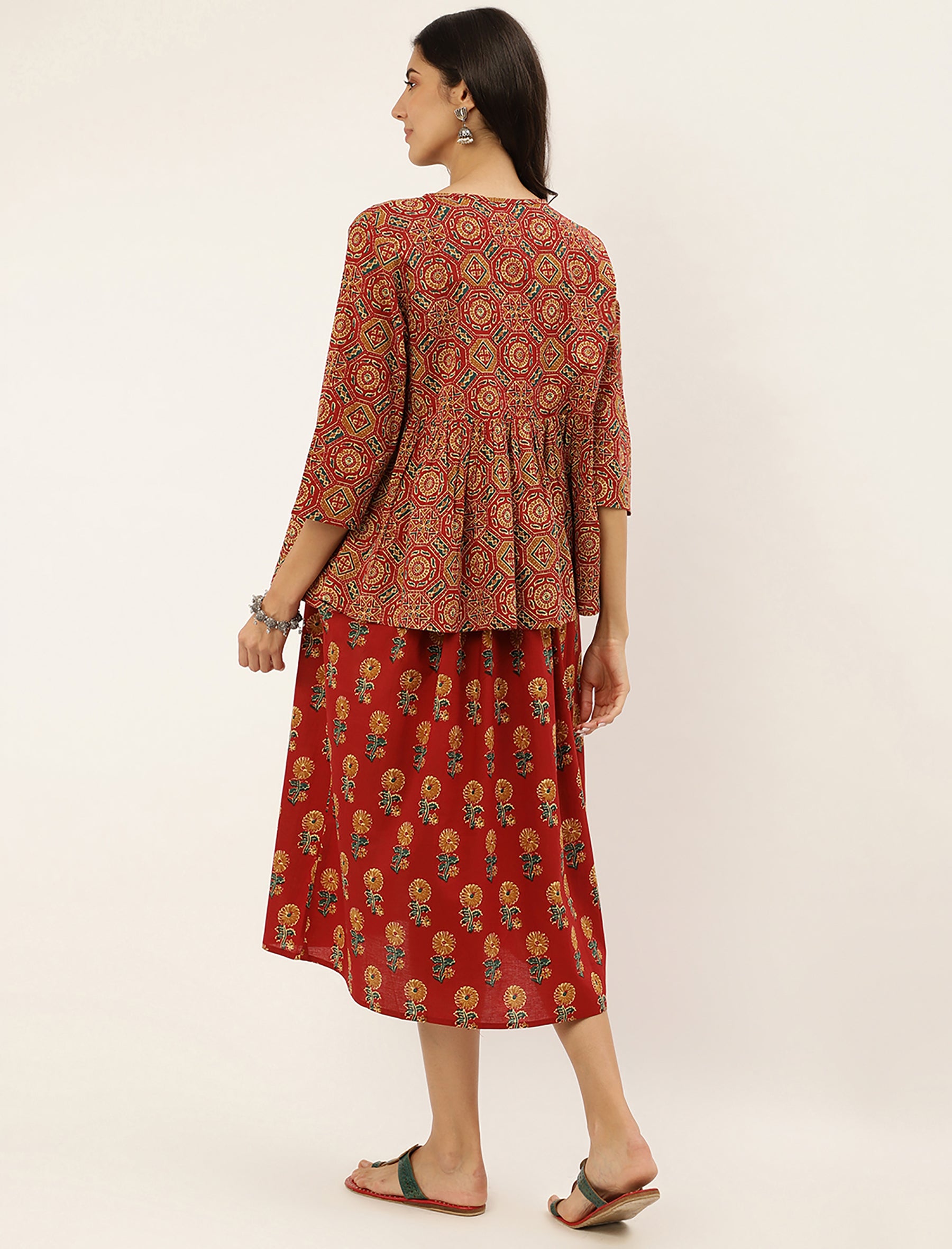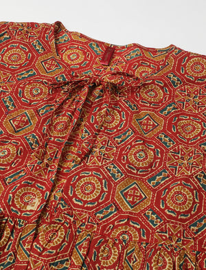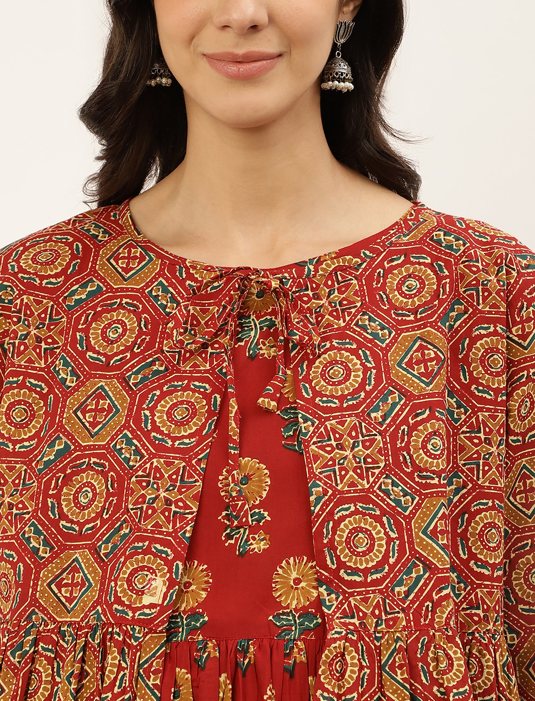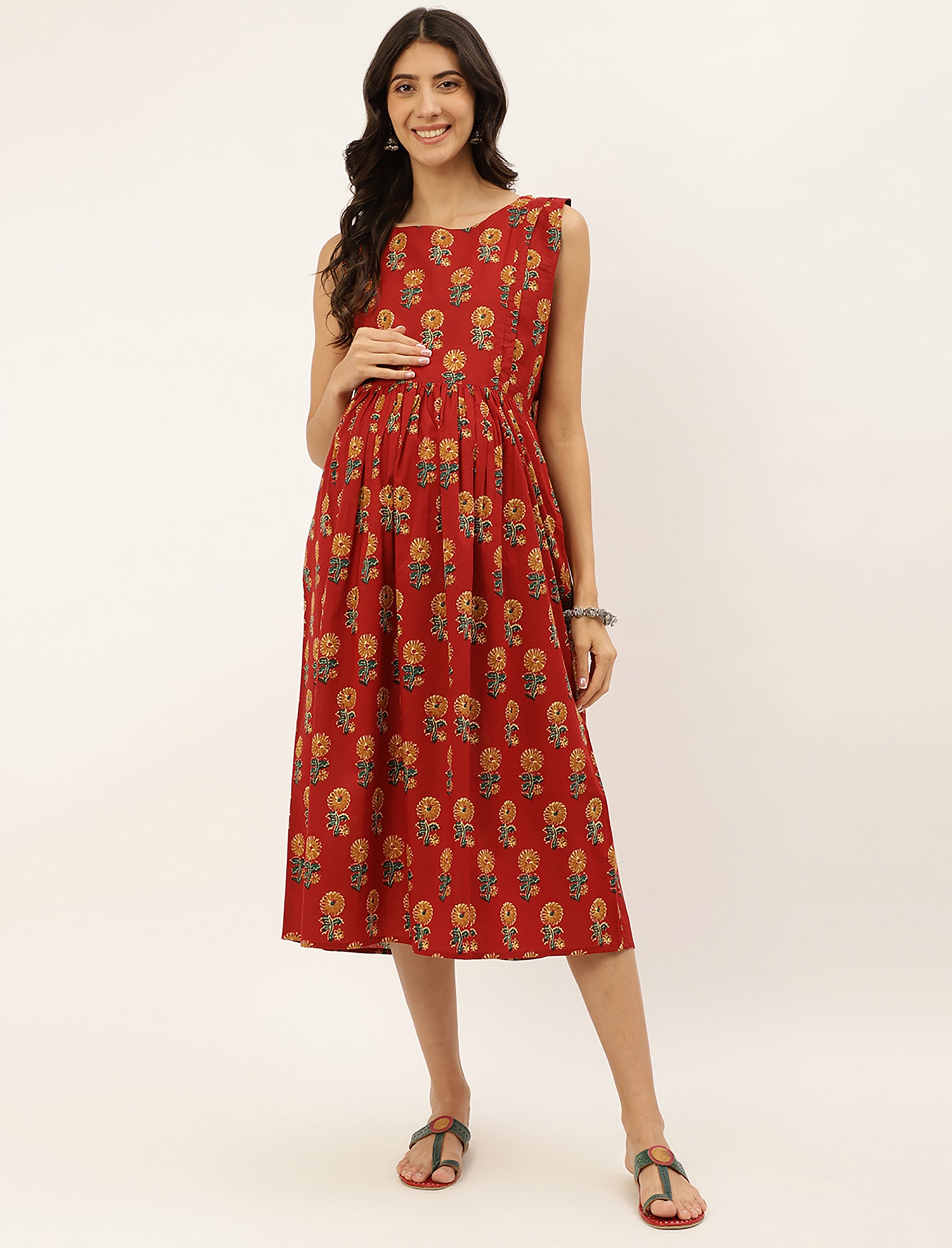 Red Butta Printed Cotton Maternity Gown With Jacket
