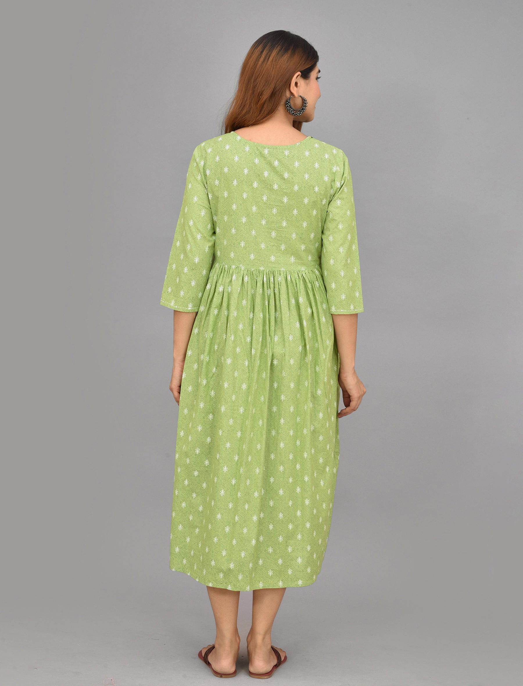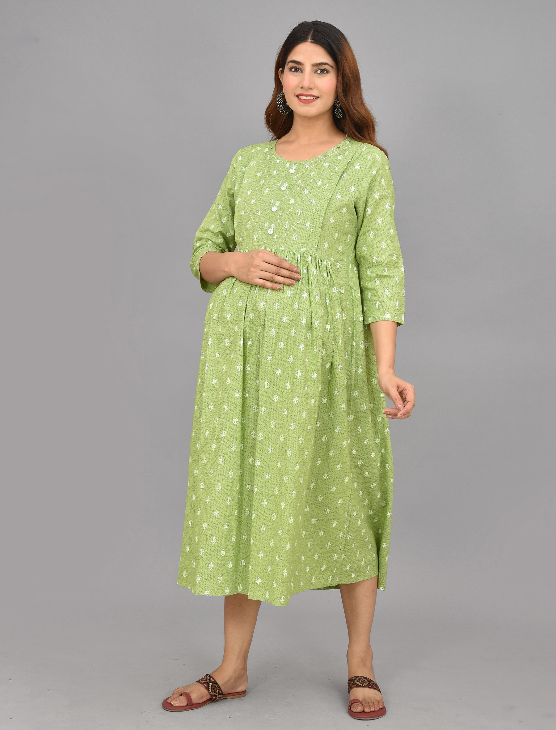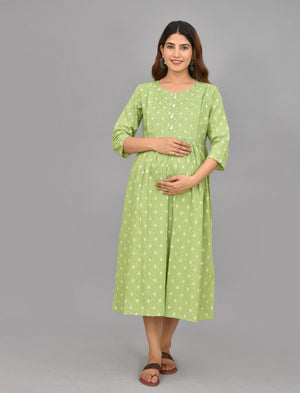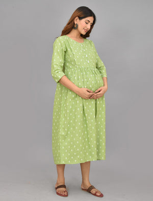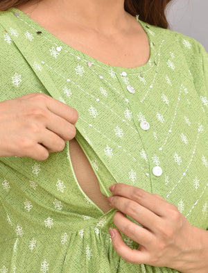 Mint Butti Printed Cotton Maternity/Feeding Gown