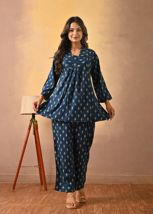 Expertly crafted from soft and breathable cotton, this Mauve Flower Printed Co-Ord Set offers unparalleled comfort and style. The intricate flower print adds a touch of femininity, while the coordinating pieces make it a versatile addition to any wardrobe. Elevate your fashion game with this must-have set.
