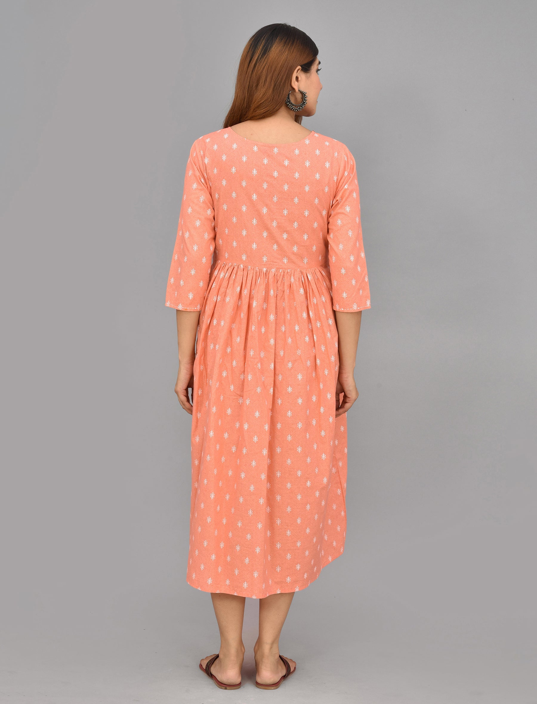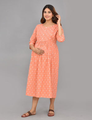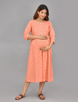 Peach Butti Printed Cotton Maternity/Feeding Gown