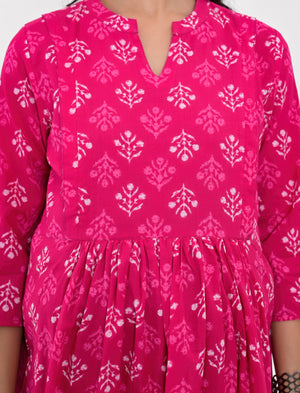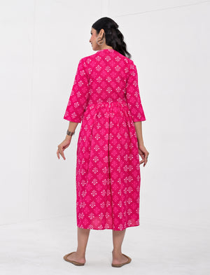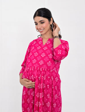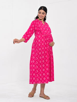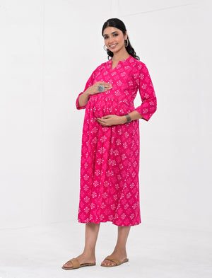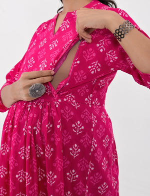Pink Butta Printed Cotton Maternity/Feeding Gown