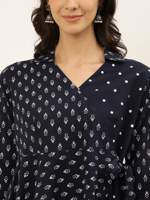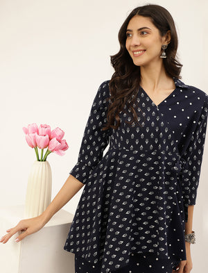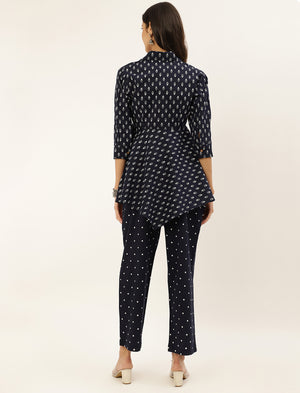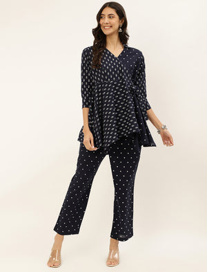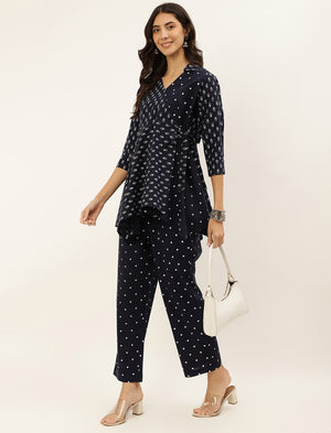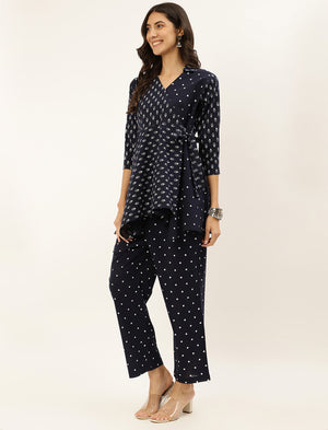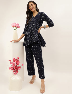Navy Polka Dots Cotton Printed Cotton Co-Ord Set