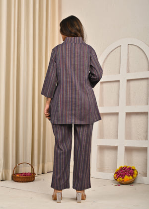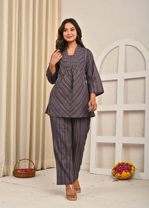 Purple Cotton Sleeveless Co-Ord Set