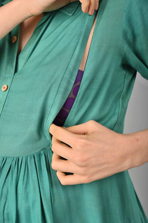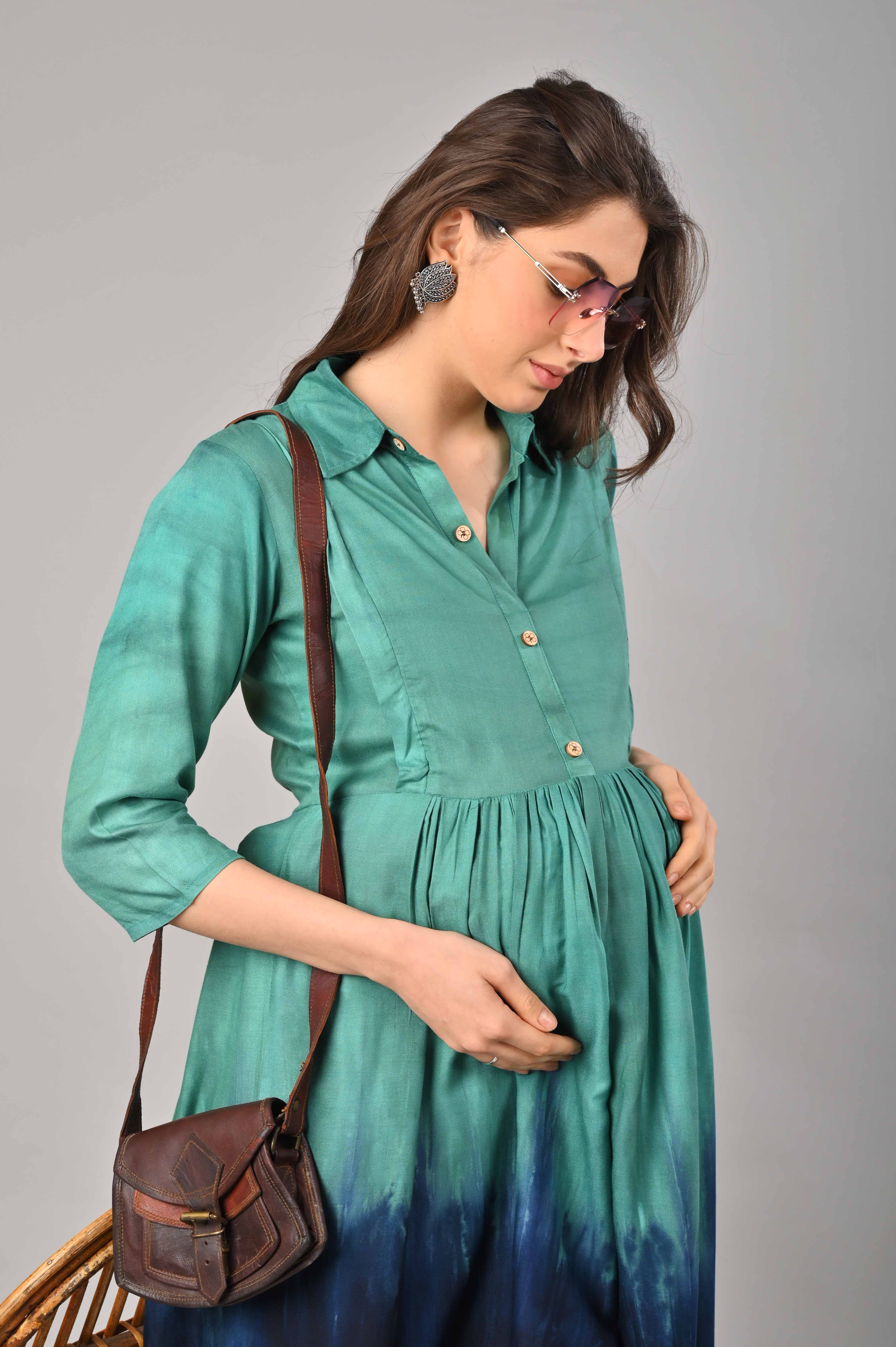 Introducing our Turquoise Cotton Printed Maternity/Feeding Gown. This gown is made of soft and breathable cotton, perfect for your comfort during pregnancy and breastfeeding. The beautiful print adds a touch of style to this functional and practical piece. Invest in your comfort and style with our Mustard Cotton Printed Maternity/Feeding Gown.