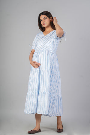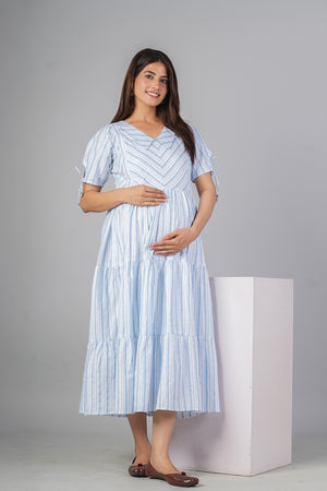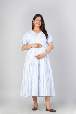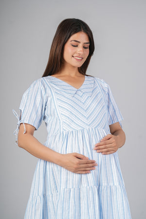 Introducing our Green Cotton Printed Maternity/Feeding Gown. This gown is made of soft and breathable cotton, perfect for your comfort during pregnancy and breastfeeding. The beautiful print adds a touch of style to this functional and practical piece. Invest in your comfort and style with our Mustard Cotton Printed Maternity/Feeding Gown.
